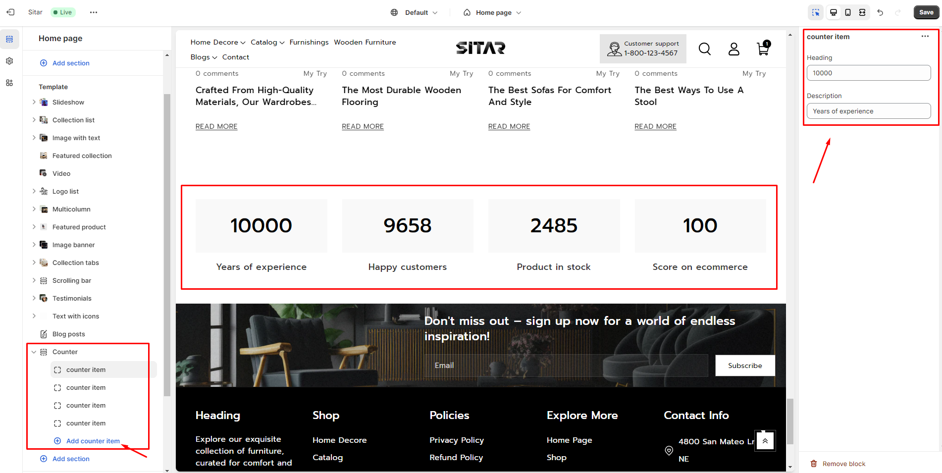 Click on "**Add counter item**" and its customization is as follows.