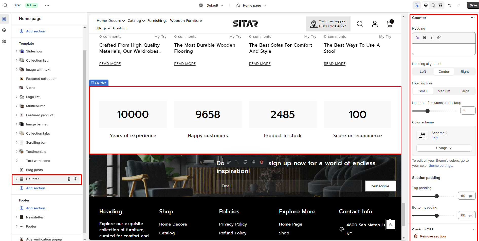 This section is taken into use to showcase special products or collections with a Counter timer.